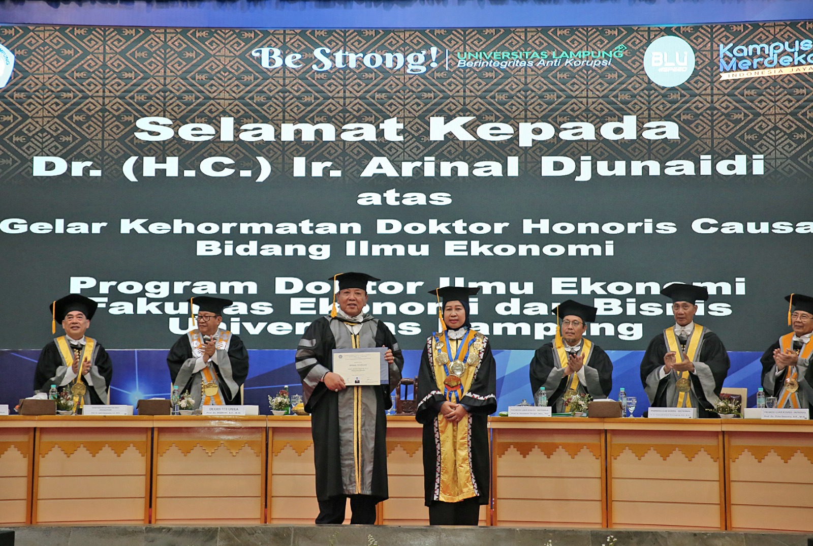 Adapun Gelar Doktor Honoris Causa diberikan karena Gubernur Lampung Arinal Djunaidi dinilai berprestasi dalam peningkatan perekonomian masyarakat.