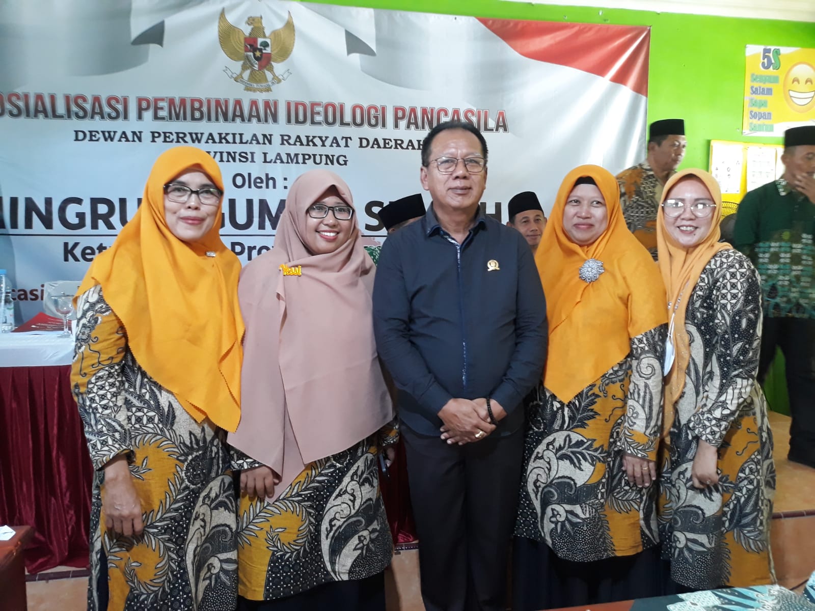 OTENTIK ( LAMPUNG ) -- Ketua DPRD Lampung, Mingrum Gumay, melakukan kegiatan sosialisasi pembinaan ideologi Pancasila di Sekolah MA Maarif Kota Gajah. Kegiatan ini bertujuan untuk meningkatkan pemahaman dan kesadaran siswa akan nilai-nilai Pancasila sebagai dasar negara.