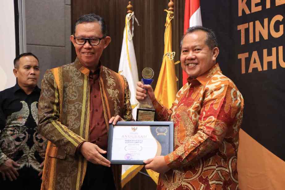 Piagam penghargaan tersebut diberikan langsung oleh Sekretaris Daerah Provinsi Lampung Fahrizal Darminto kepada Sekretaris Daerah Kota Bandar Lampung Iwan Gunawan.