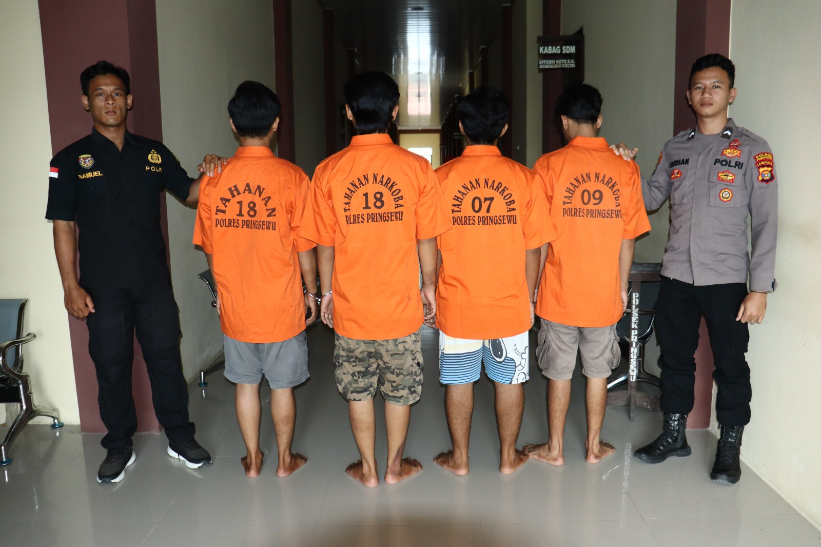 Kasat Narkoba Iptu Yudi Raymond, yang mewakili Kapolres Pringsewu AKBP Benny Prasetya, menyatakan bahwa keempat tersangka yang berhasil ditangkap merupakan bagian dari jaringan pengedar narkoba di wilayah Pringsewu. AR ditangkap saat melintas di Jalan KH Gholib Pringsewu dengan barang bukti dua bungkus ganja seberat 8,23 gram dan satu unit handphone.