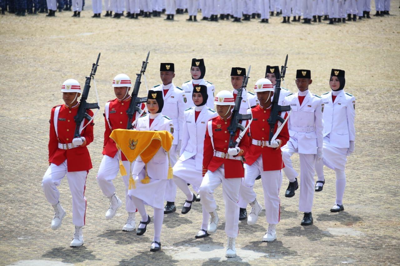 Dengan didampingi petugas Pengerek Bendera yakni Nyoman Subagio, siswa dari SMAN 1 Tanjung Raya, Kabupaten Mesuji dan petugas Pembentang Bendera yakni Toto Prayogi Pratama, siswa dari SMAN 1 Kalianda, Kabupaten Lampung Selatan.