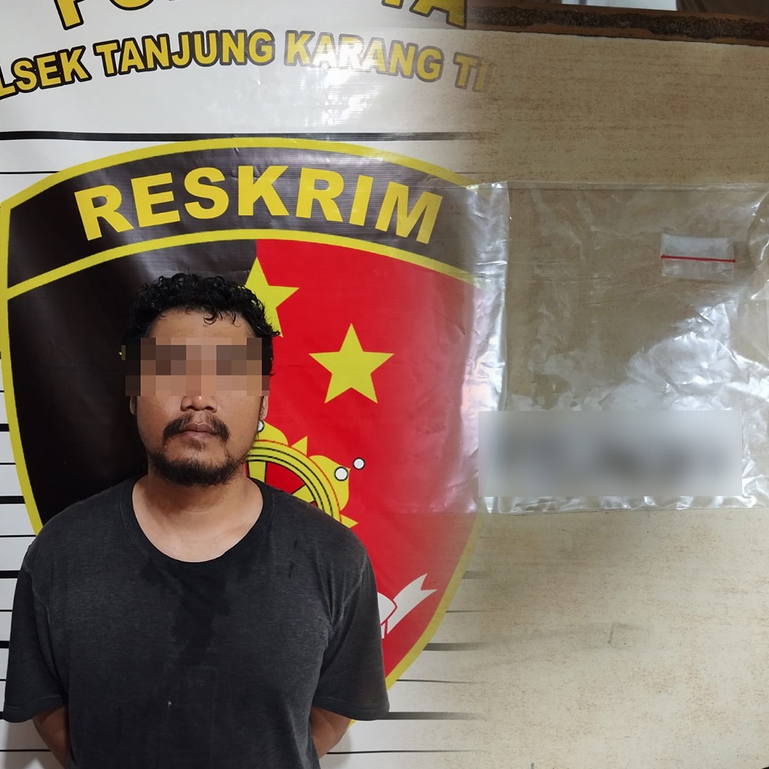 OTENTIK ( Bandar Lampung ) – Unit Reskrim Polsek Tanjung Karang Timur berhasil meringkus HAS (29), warga Kelurahan Perumnas Way Halim, Kecamatan Way Halim, Kota Bandar Lampung, lantaran kedapatan membawa narkoba jenis sabu.