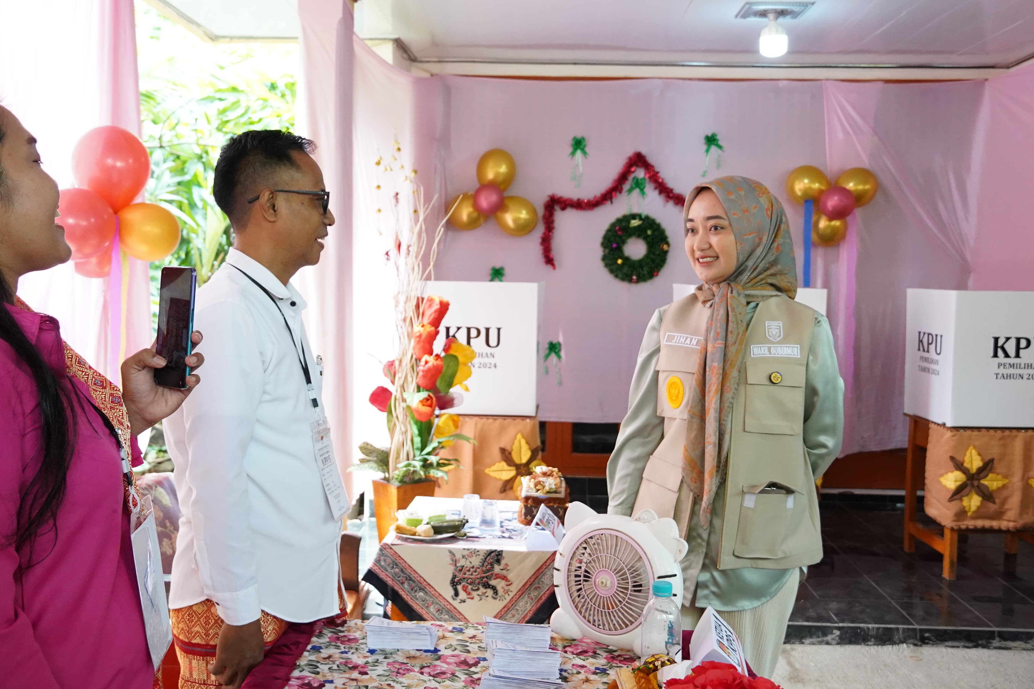 OTENTIK ( PESAWARAN ) --- Wakil Gubernur Lampung, Jihan Nurlela meninjau langsung pelaksanaan Pemungutan Suara Ulang (PSU) di Kabupaten Pesawaran Tahun 2025, Sabtu (24/05/2025).