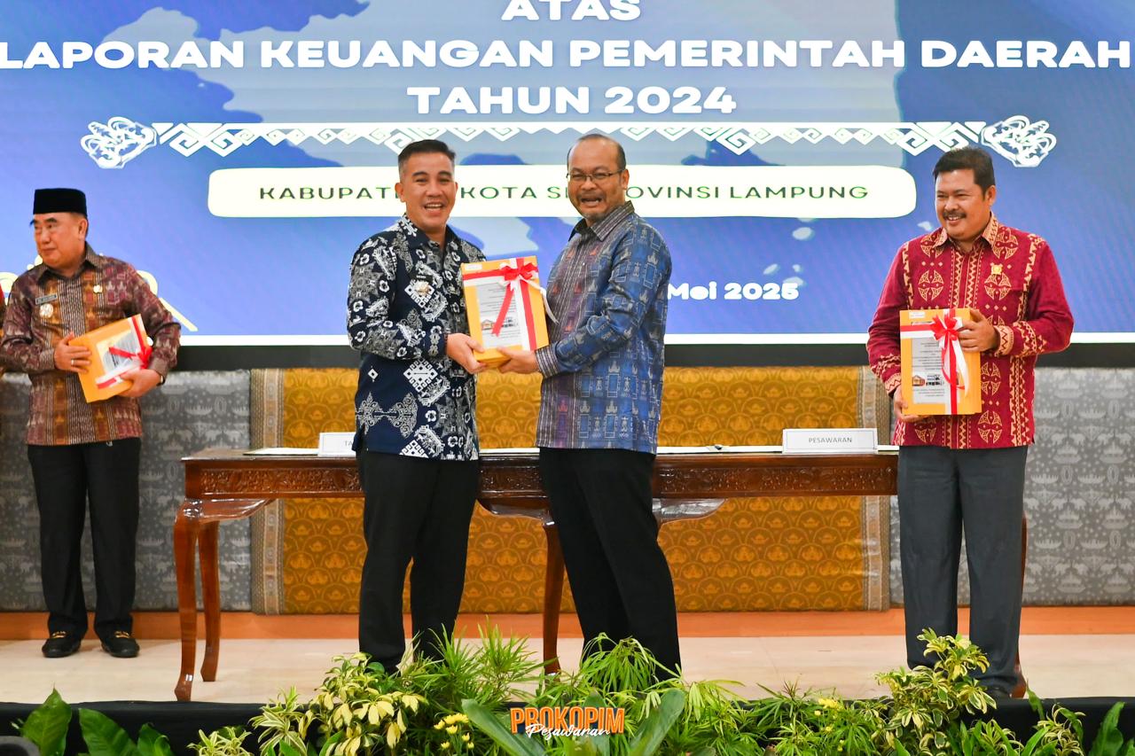 Penyerahan Laporan Hasil Pemeriksaan (LHP) dilakukan di Auditorium BPK Perwakilan Lampung, Teluk Betung Selatan, Bandar Lampung, Senin (26/5).