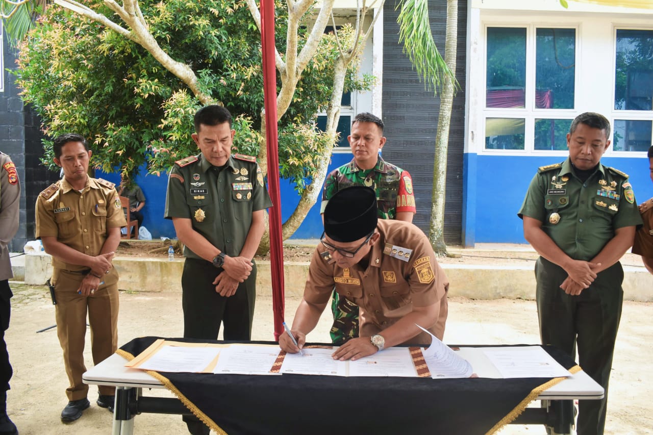 OTENTIK ( LAMPUNG ) -- Komandan Korem 043/Gatam, Brigjen TNI Rikas Hidayatullah, S.E., M.M., menerima hibah lahan seluas 14 hektar dari Pemerintah Kabupaten Lampung Tengah yang diserahkan langsung oleh Bupati Lampung Tengah, dr. Hi. Ardito Wijaya, M.K.M. Penandatanganan Naskah Perjanjian Hibah Daerah (NPHD) digelar di SMKN Unggul Kampung Negara Bumi Ilir, Kecamatan Anak Tuha, Kabupaten Lampung Tengah.