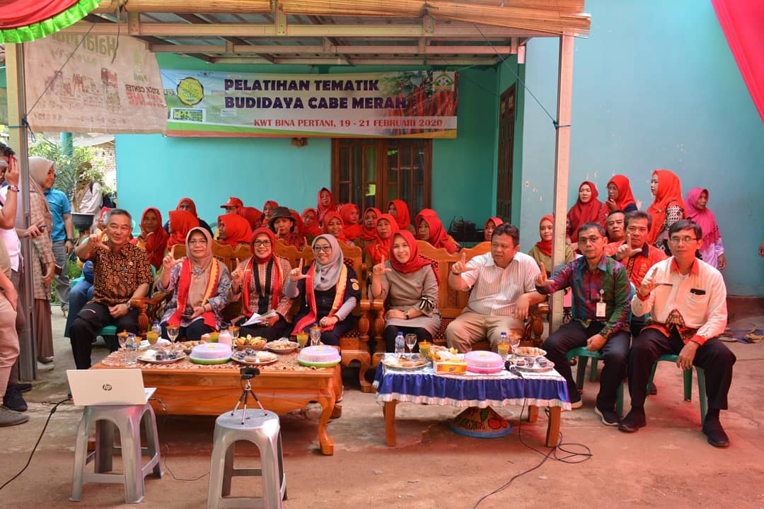 OTENTIK (LAMPUNG TENGAH)--Ketua Forum Kelompok Wanita Tani (KWT) Kabupaten Lampung Tengah Hj. Ellya Lusiana Loekman menerima kunjungan Sekretaris Badan Kementrian Pertanian Republik Indonesia Siti Munifah di Kampung Liman Benawi, Kecamatan Trimurjo, Kabupaten Lampung Tengah, Jumat (6/3/2020).