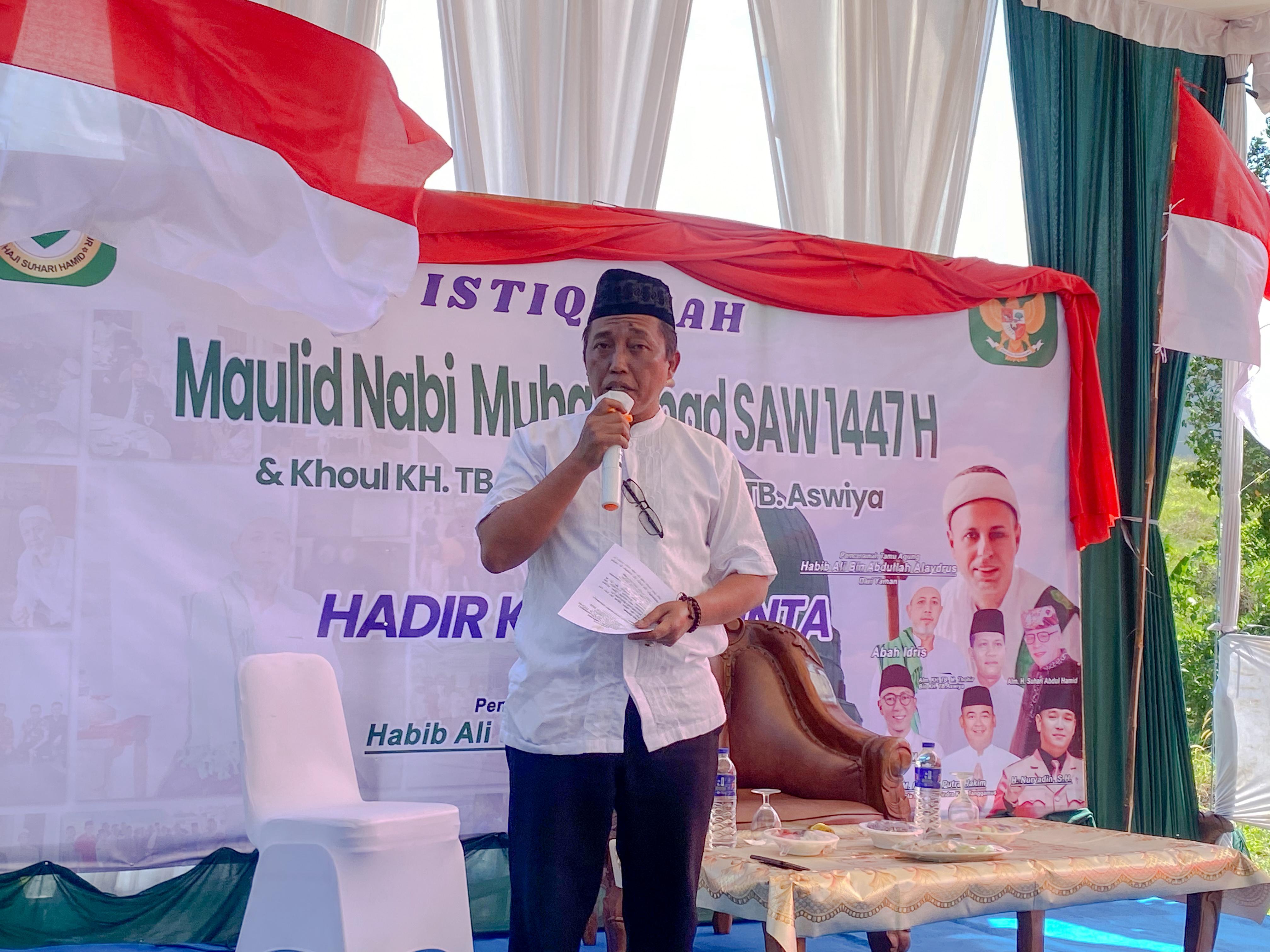 OTENTIK ( BANDARLAMPUNG ) -- Gubernur Lampung diwakili oleh Kepala Dinas Kominfotik Provinsi Lampung, Ganjar Jationo, menghadiri Peringatan Maulid Nabi Muhammad SAW 1447 Hijriah sekaligus Haul KH. Tb. M. Thohir bin KH. Tb. Aswiya, di Pondok Pesantren Al Istiqomah Bani Thohir wa Haji Suhari Abdul Hamid Rajabasa, Minggu (24/8/2025).