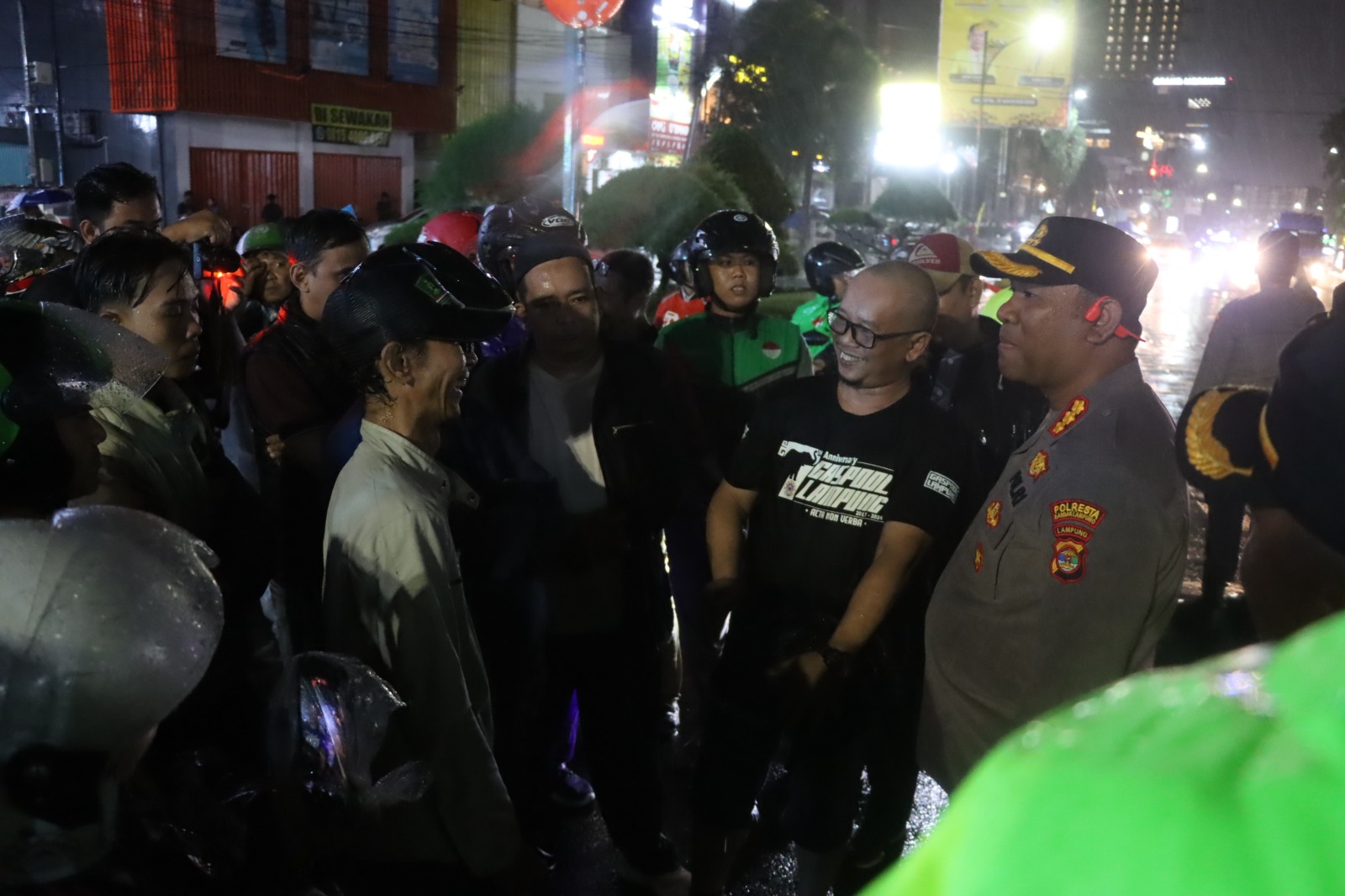 Kapolresta Bandar Lampung, Kombes Pol Alfred Jacob Tilukay, hadir langsung dalam doa bersama yang digelar komunitas Gaspool (Gabungan Admin Shelter Pengemudi Ojek Online) di Tugu Adipura, Jumat (29/8/2025) malam.