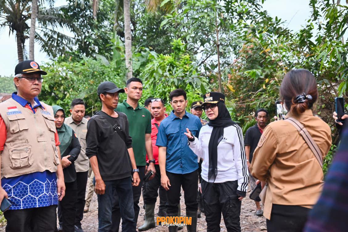Selain meninjau lokasi banjir, Bupati Nanda juga menyempatkan diri mengunjungi rumah-rumah warga yang terdampak, sekaligus menginformasikan kepada masyarakat mengenai adanya bantuan berupa air minum, sembako, dan layanan kesehatan tersedia yang bisa diakses masyarakat di posko desa.