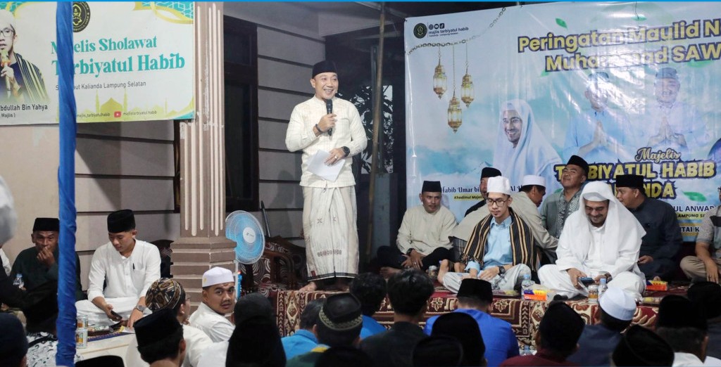 Syaiful juga menyampaikan apresiasi kepada Majelis Sholawat Tarbiyatul Habib yang dinilainya konsisten membina umat melalui dakwah yang sejuk. Ia menyambut kedatangan Al Mukarom Habib Umar Al-Haddad di bumi Khagom Mufakat dengan harapan kehadirannya membawa berkah dan pencerahan bagi masyarakat Lampung Selatan.