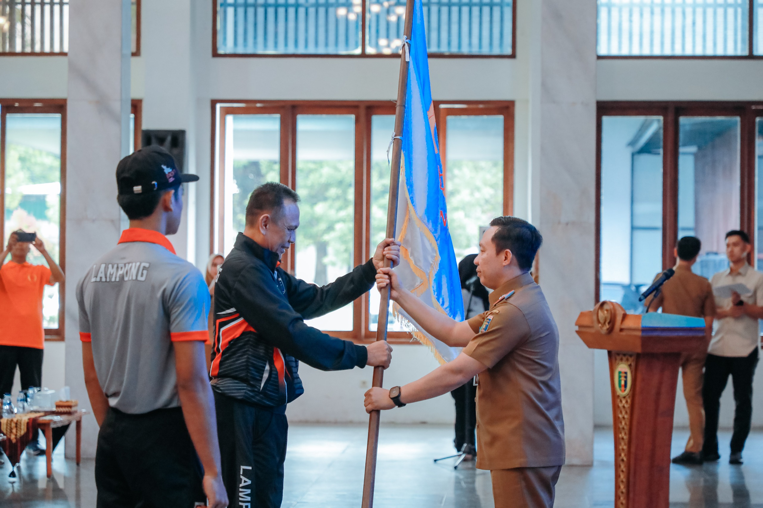 Pelepasan ditandai dengan penyematan atribut kontingen kepada perwakilan atlet serta penyerahan bendera pataka dari Gubernur Lampung yang diwakili oleh Sekretaris Daerah Provinsi Lampung kepada Ketua Komite Olahraga Nasional Indonesia (KONI) Provinsi Lampung yang juga bertindak sebagai Chief de Mission (CdM) Kontingen Lampung, Taufik Hidayat, bertempat di Mahan Agung, Selasa (07/10/2025).