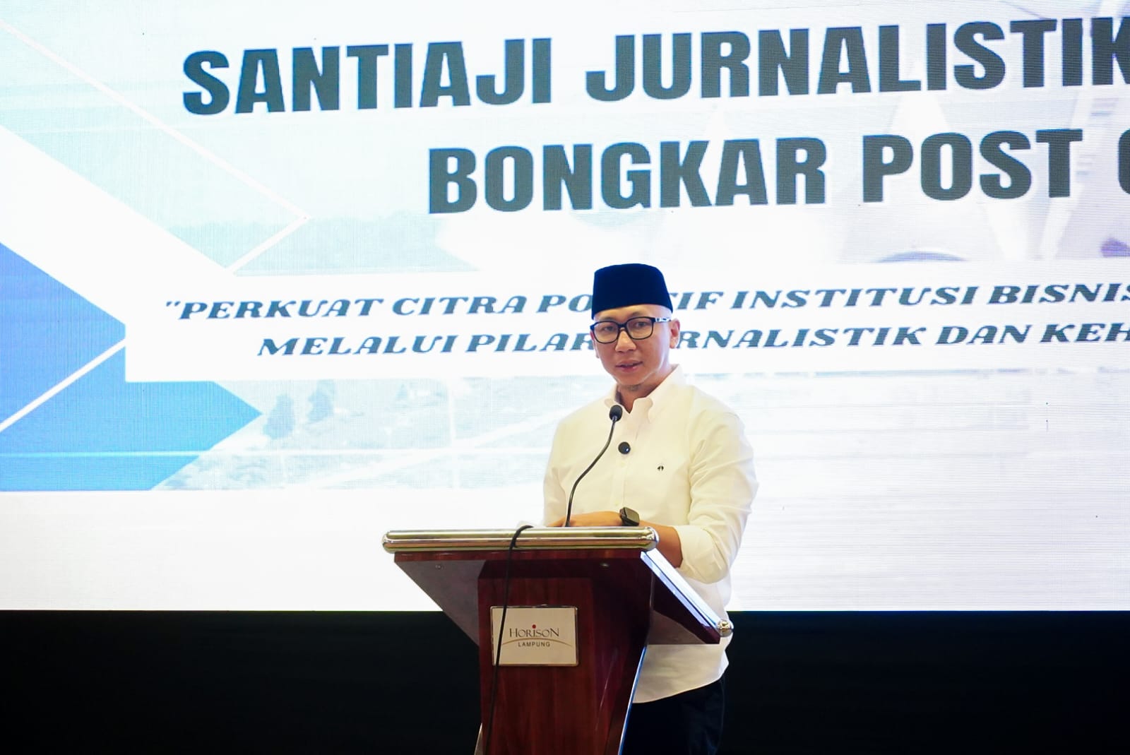 OTENTIK ( LAMPUNG ) -- Gubernur Rahmat Mirzani Djausal membuka secara resmi kegiatan Santiaji Jurnalistik dan Kehumasan Bongkar Post Group 2025 bertempat di Ballroom Hotel Horison, Sabtu (18/10/2025).