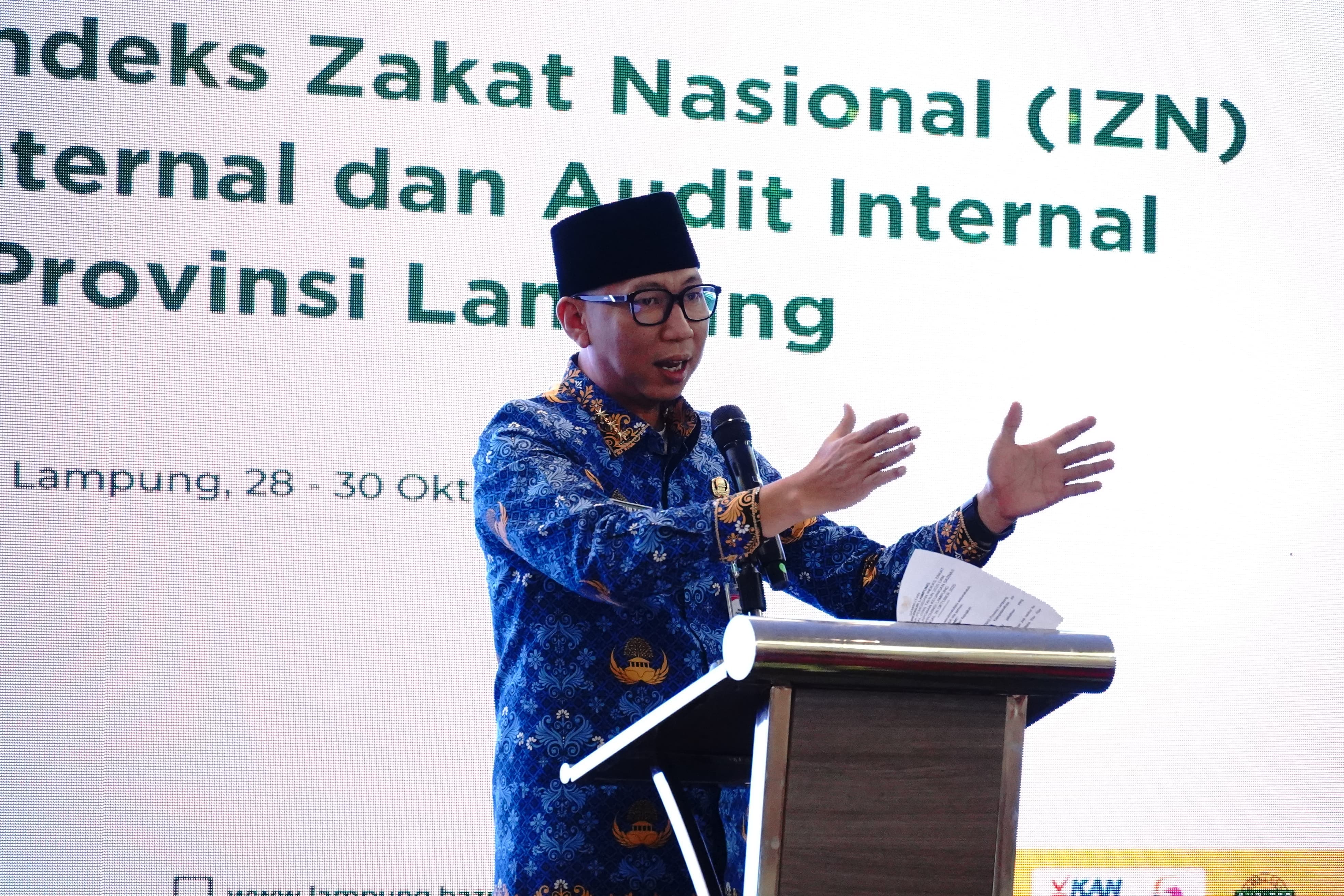 Hal itu disampaikan Gubernur dalam acara Sosialisasi Pengisian Indeks Zakat Nasional (IZN) dan Pengendalian serta Audit Internal BAZNAS se-Provinsi Lampung, yang digelar di Hotel Emersia, Selasa (28/10/2025).