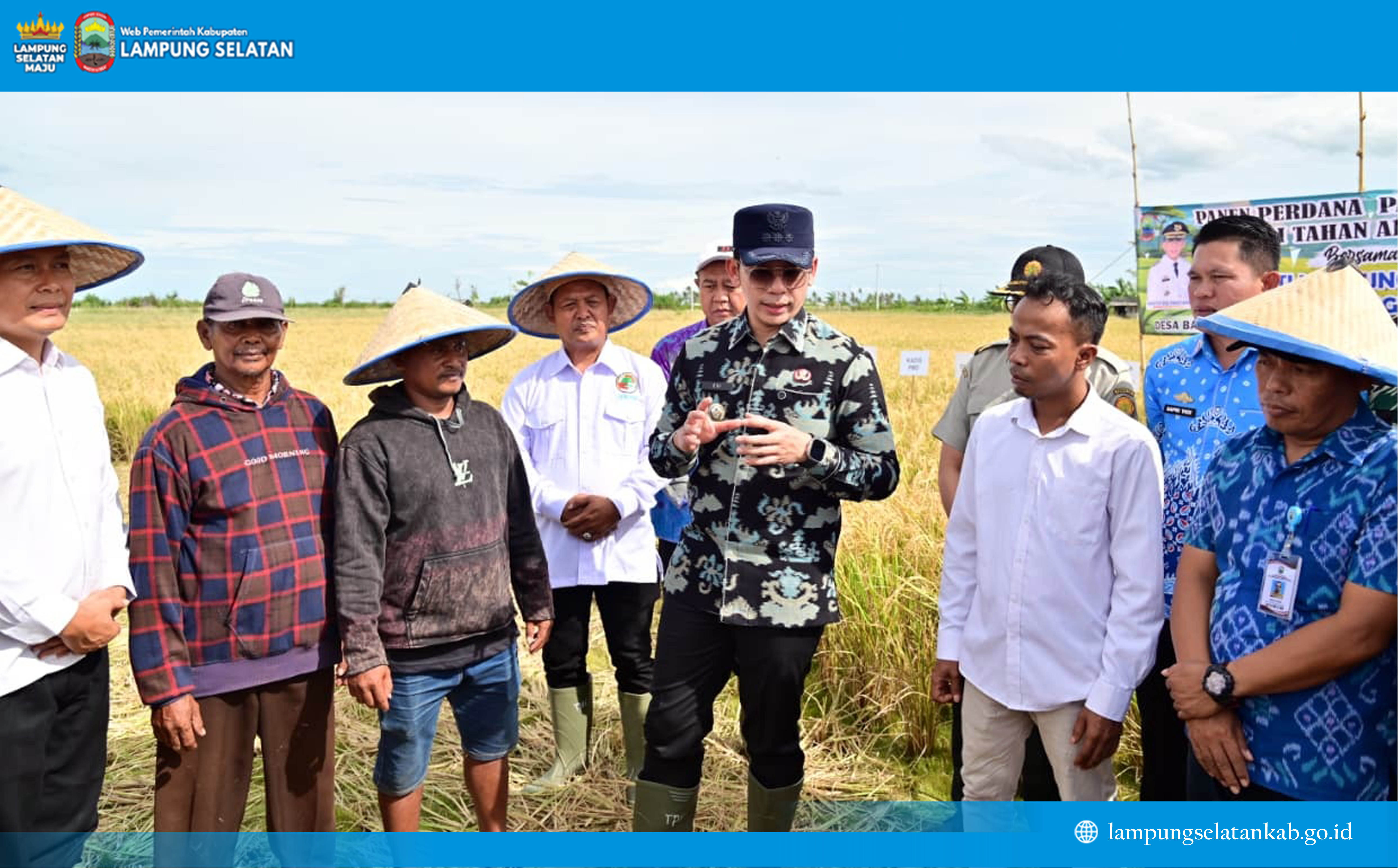 Apresiasi itu disampaikan Bupati Egi saat menghadiri Panen Raya Perdana Padi Varietas Biosalin di Desa Bandar Agung, Kecamatan Sragi, Kamis (6/11/2025).