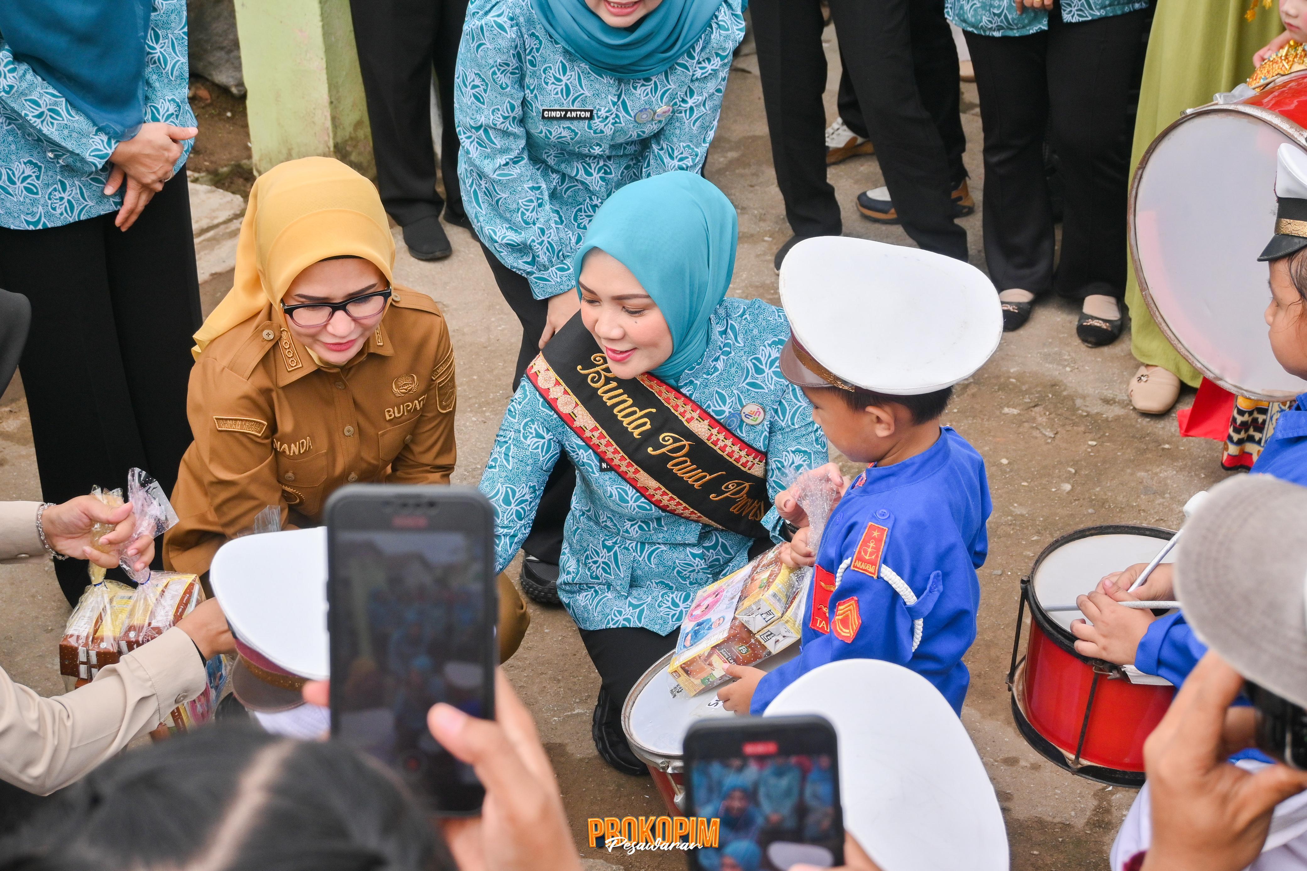 Kedatangan Ketua TP PKK Provinsi Lampung bersama rombongan diawali dengan kunjungan ke PAUD An-Nur di Kecamatan Teluk Pandan, kemudian disambut dengan prosesi pengalungan oleh Bupati Pesawaran Nanda Indira Bastian didampingi Ketua TP PKK Kabupaten Pesawaran Cindy Aria Anton, serta jajaran pengurus PKK Kabupaten. Suasana semakin semarak dengan penampilan drum band dari siswa-siswi setempat yang menyambut rombongan dengan penuh antusias.