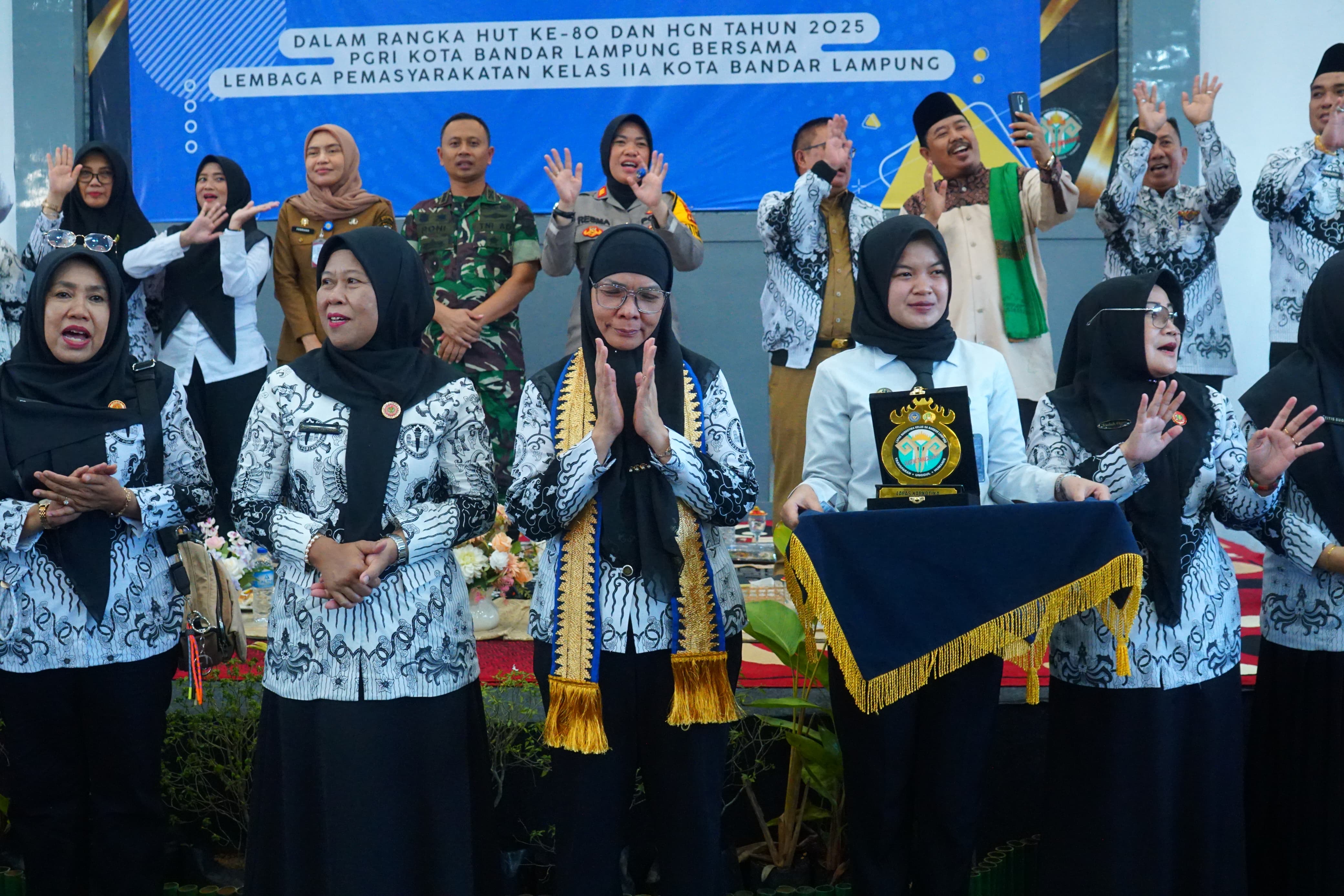OTENTIK ( BANDAR LAMPUNG ) -- Perayaan hari ulang tahun (HUT) ke-80 Persatuan Guru Republik Indonesia (PGRI) dan Hari Guru Nasional (HGN) 2025 tingkat Kota Bandar Lampung pada tahun ini, suasananya cukup berbeda dan berasa sangat istimewa.
