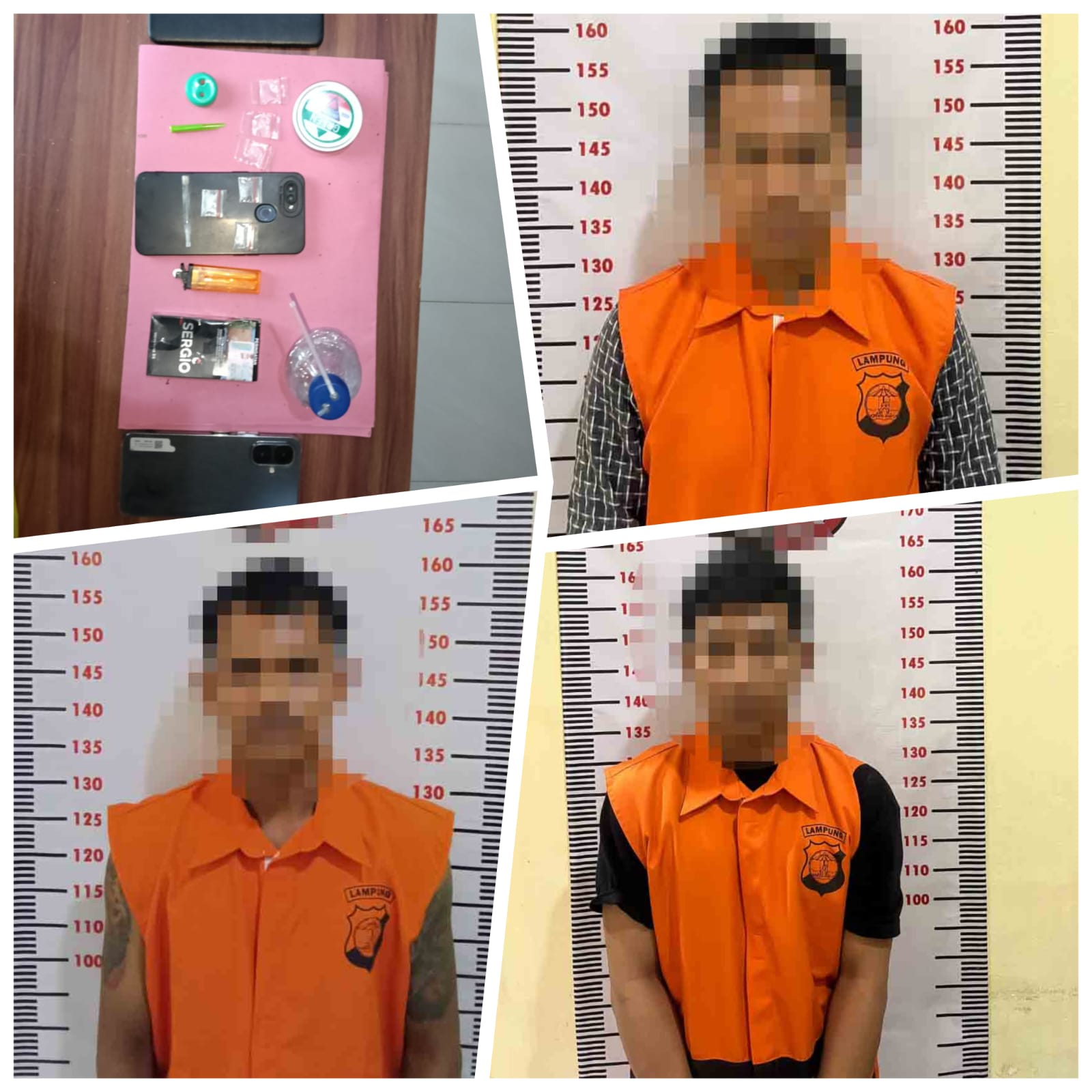 Hasilnya, polisi berhasil meringkus dua orang lainnya, yakni SA (45) dan EH (26). Di lokasi kedua, petugas menemukan sejumlah barang bukti yang memperkuat dugaan penyalahgunaan narkotika.
