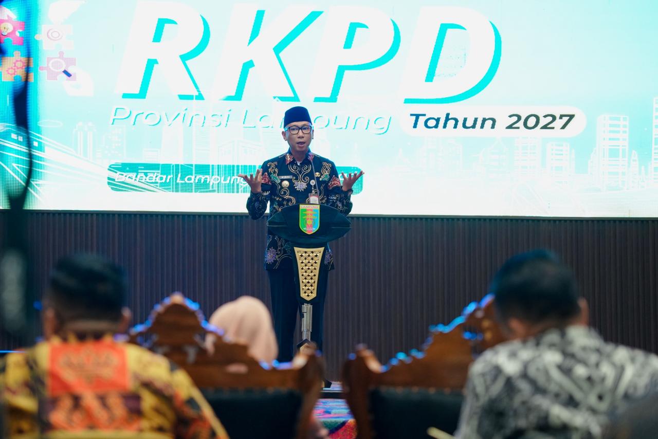 Dalam sambutannya di Balai Keratun Lantai III, Gubernur menyebut penyusunan RKPD 2027 harus mulai memikirkan target besar pertumbuhan ekonomi Lampung hingga 8 persen serta penurunan angka kemiskinan menjadi 5 persen. Menurutnya, target tersebut hanya bisa dicapai jika pemerintah tidak terpaku semata pada belanja Anggaran Pendapatan dan Belanja Daerah (APBD).