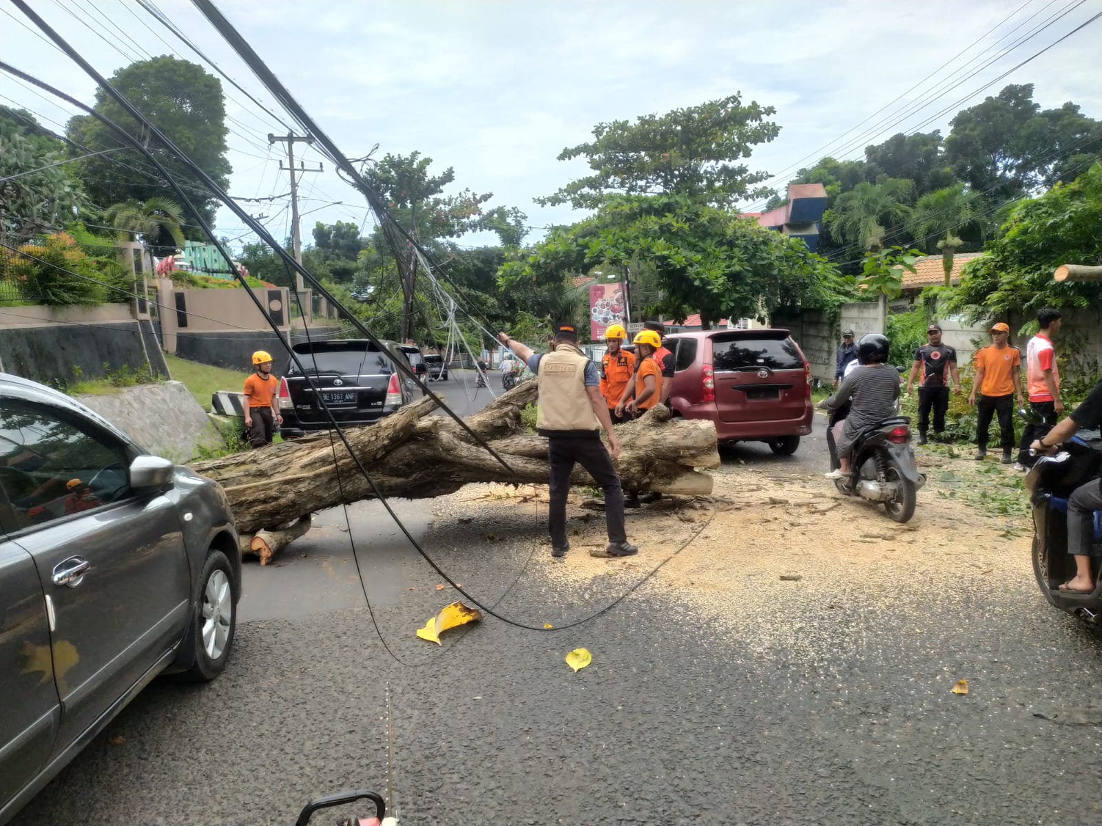 "Pohon ini diperkirakan setinggi 15 meter lebih. Posisinya berada di sisi talud drainase, sehingga akarnya kurang kuat menopang.