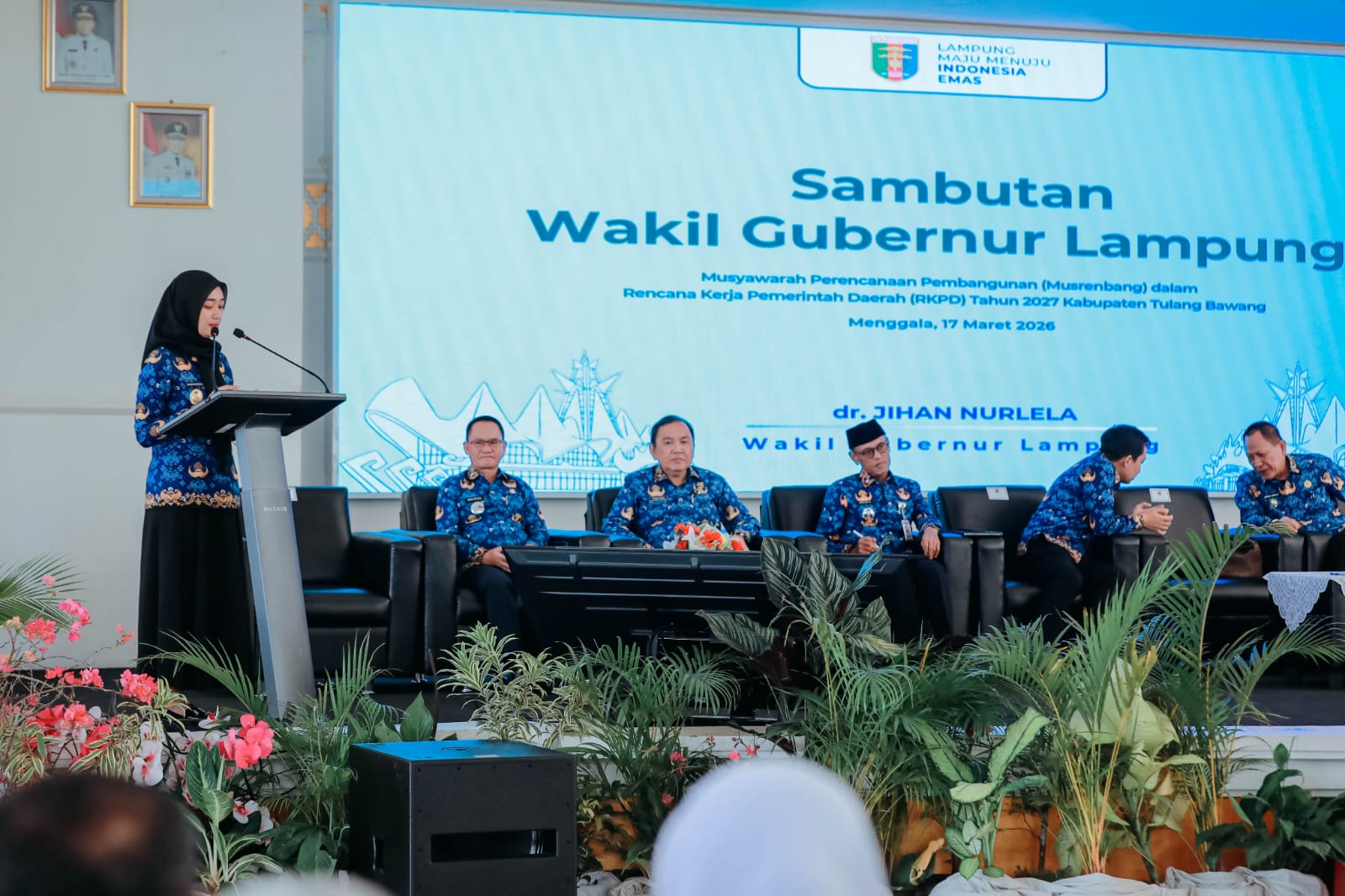 OTENTIK ( TULANG BAWANG ) — Wakil Gubernur Lampung Jihan Nurlela membuka Forum Musyawarah Perencanaan Pembangunan (Musrenbang) Rencana Kerja Pemerintah Daerah (RKPD) Tahun 2027 Kabupaten Tulang Bawang, yang berlangsung di GSG Menggala, Tulang Bawang, Selasa (17/3/2026).