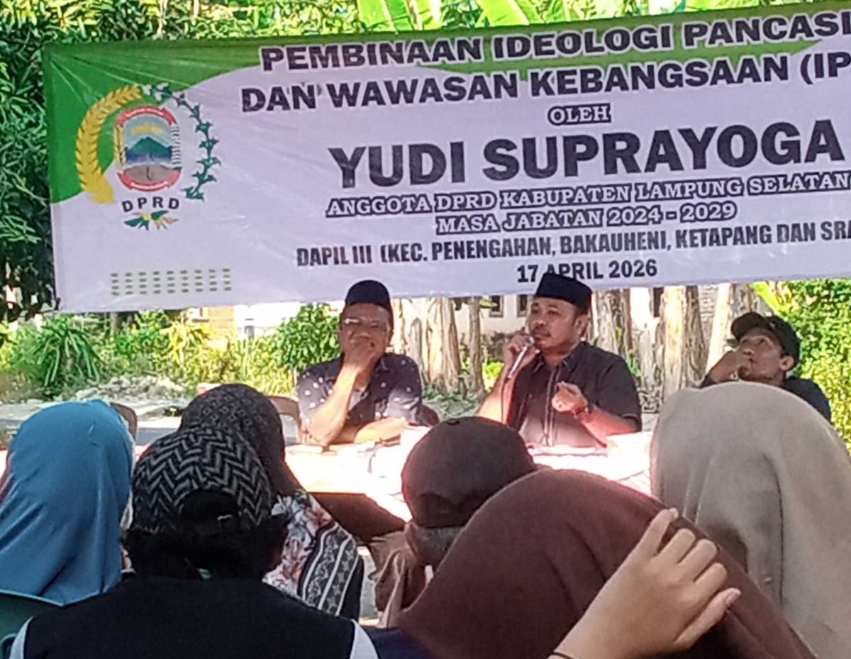 OTENTIK ( LAMSEL ) -- Anggota DPRD Kabupaten Lampung Selatan, Yudi Suprayoga, melaksanakan kegiatan Pembinaan Ideologi Pancasila dan Wawasan Kebangsaan (IPWK) di Desa Ruguk, Kecamatan Ketapang, Jumat (17/4/2026).