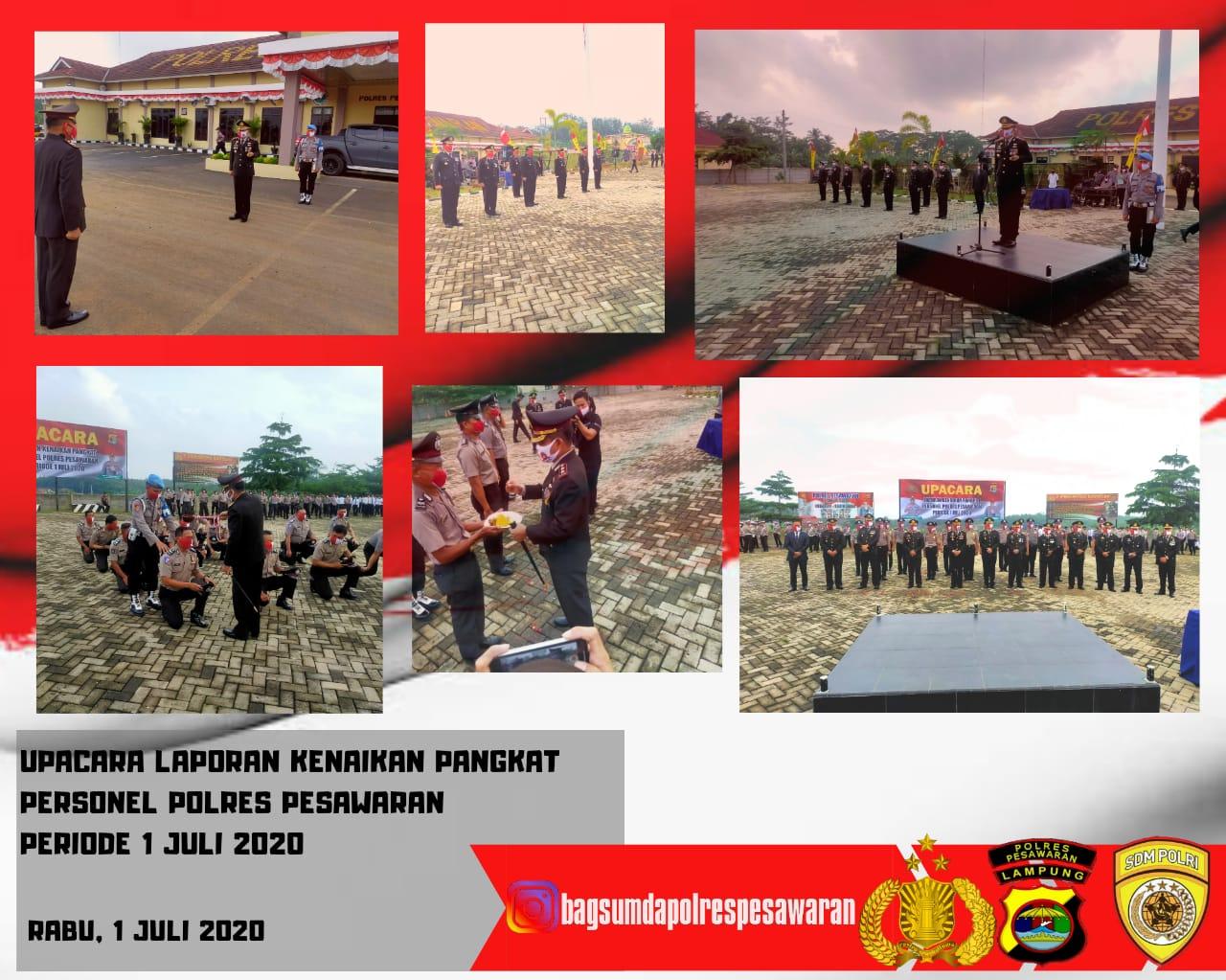OTENTIK (PESAWARAN)—Upacara Kenaikan Pangkat Personel Polres Pesawaran Periode 1 Juli 2020 di Lapangan Mapolres Pesawaran, Rabu (1/7/2020) pukul 06.30 WIB s/d selesai.