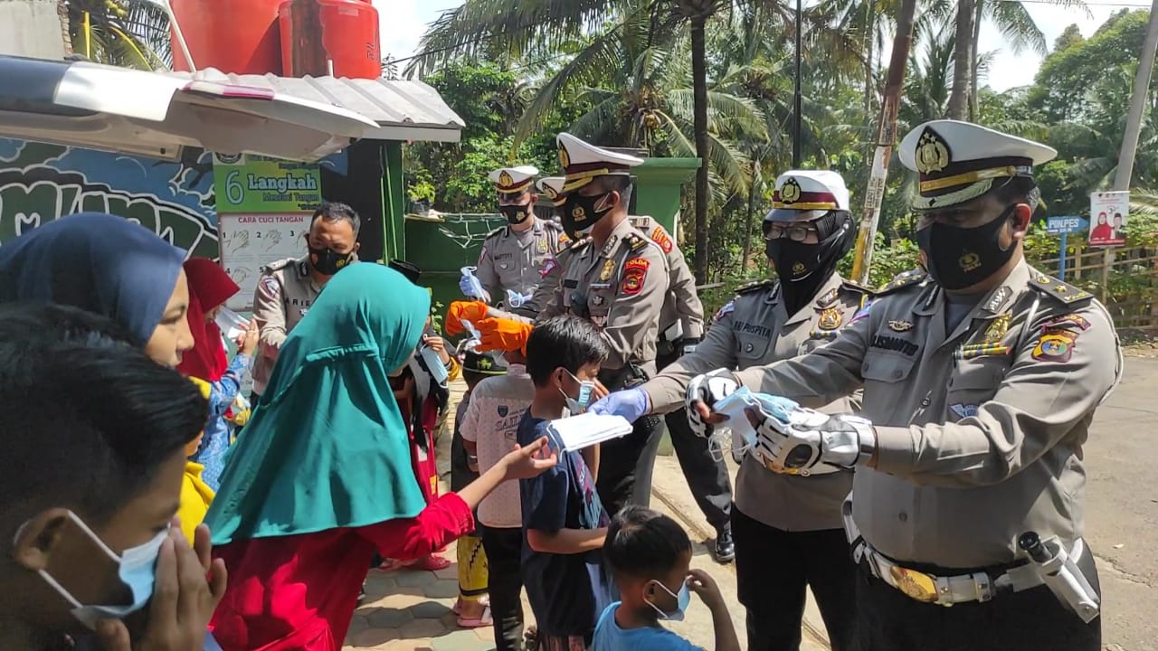 membagikan masker dan memberikan himbauan terkait penerapan protokol kesehatan