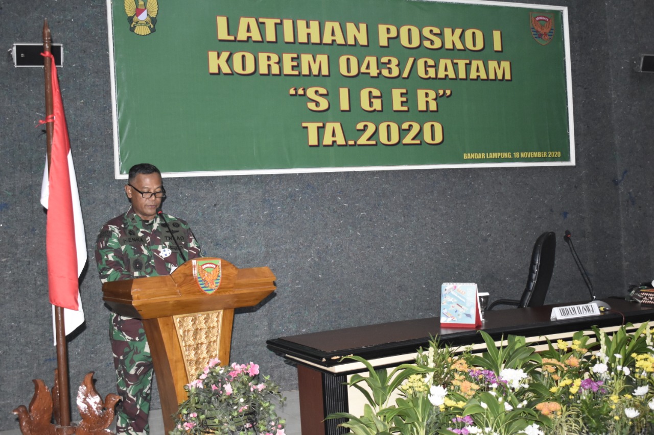 diantaranya menyampaikan bahwa Latihan Posko 1 Korem 043/Gatam merupakan