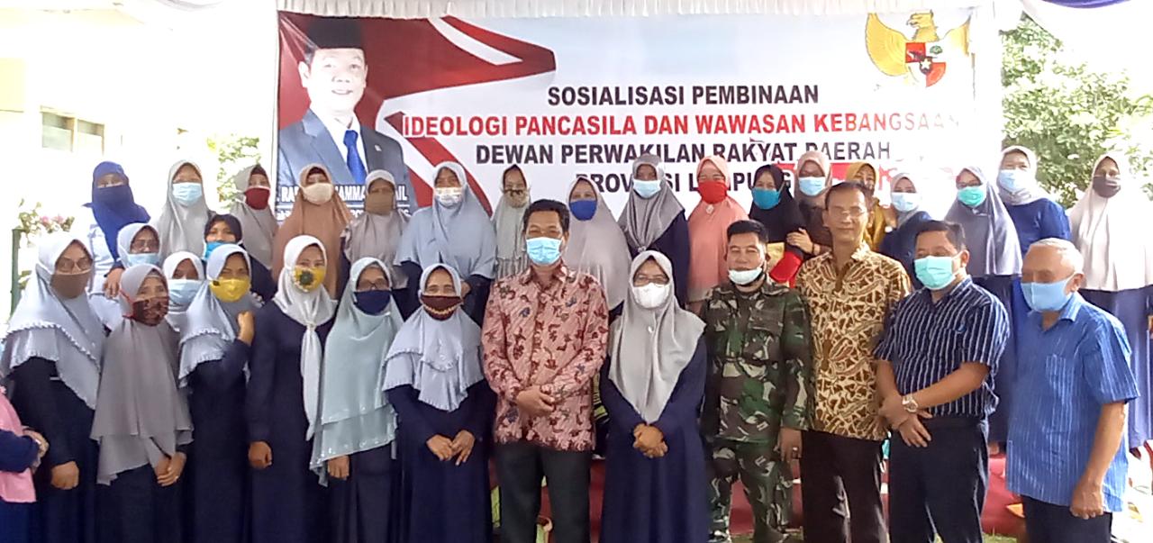 OTENTIK (BANDAR LAMPUNG - Wakil ketua DPRD Provinsi Lampung Ir. Raden Muhammad Ismail (RMI), Gelar Sosialisasi Pembinaan Ideologi Pancasila Dan Wawasan Kebangasaan dan penerapan protokol kesehatan yang ketat sesuai anjuran pemerintah serta taat kepada Perda No. 3 Tahun 2020.