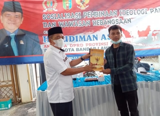 OTENTIK (BANDARLAMPUNG)—Tangkal radikalisme menjadi topik pembahasan Anggota DPRD Provinsi Lampung, Budiman AS, saat menggelar Sosialisasi Pembinaan Ideologi Pancasila dan Wawasan Kebangsaan, Minggu (21/3).