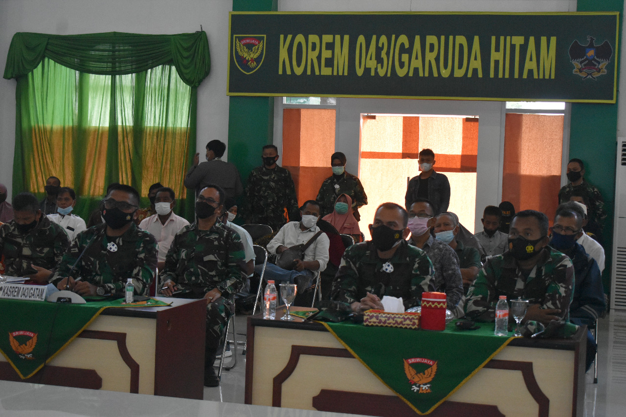 Turut hadir dalam acara Telecoference ini Kasrem 043 / Gatam Kolonel Inf Dwi Endrosasongko S.Sos mewakili Danrem, Kasiren Korem 043 / Gatam, para Kasi Kasrem 043 / Gatam, para Dandim jajaran Korem 043 / Gatam. (ida / rls)