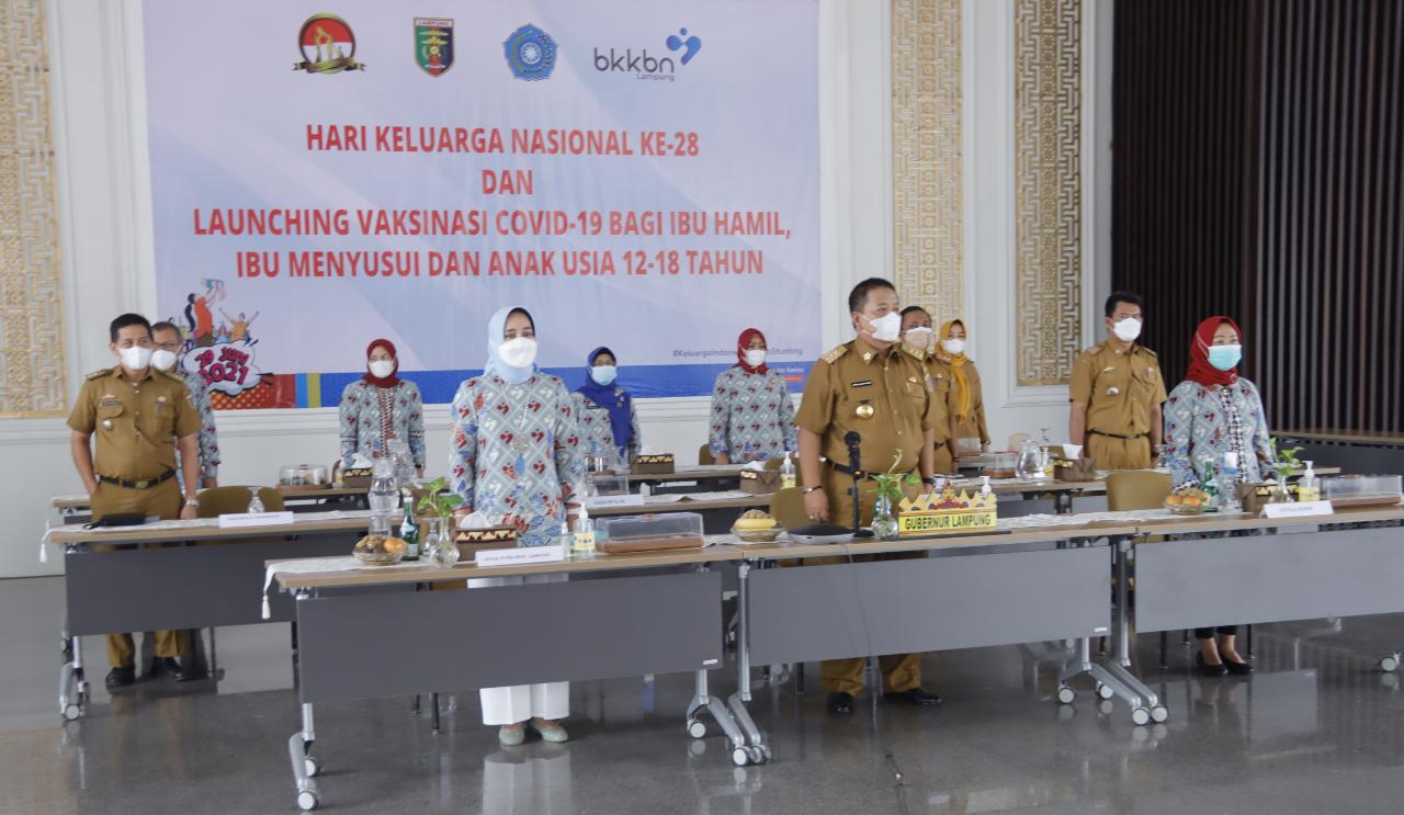 OTENTIK ( BANDARLAMPUNG) – Gubernur Arinal Djunaidi menghadiri Puncak Peringatan Hari Keluarga Nasional (Harganas) Ke-28 dan Peluncuran Vaksinasi Covid-19 bagi Ibu Hamil, Ibu Menyusui dan Anak Usia 12-18 Tahun secara virtual, bertempat di Mahan Agung, Selasa ( 29/06).