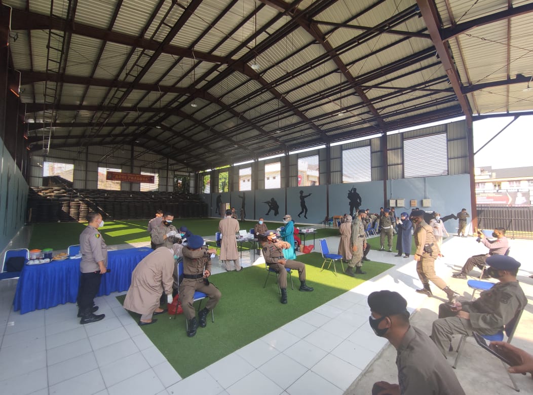OTENTIK ( BANDAR LAMPUNG) – Tim Kesehatan dari Satuan Brimob (Satbrimob) dan Bid Dokes Polda Lampung melaksanakan tes Swab Antigen kepada seluruh personel Sat Brimob Polda Lampung guna mengetahui apakah terkena atau tidaknya Virus Corona Di lapangan tembak indoor Adhi Pradana Mako Sat Brimob Polda Lampung , Senin 05/07.