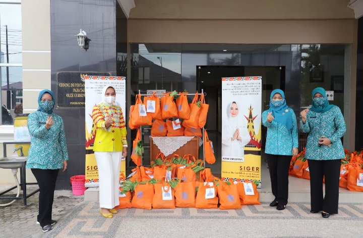 membagikan 100 paket "SIGER" dan 300 masker kain di dua titik yaitu