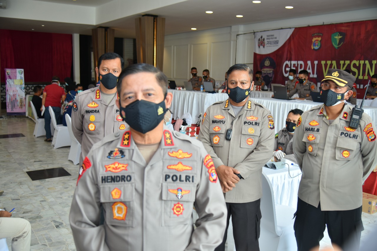 Pada kesempatan itu, Kapolda Lampung Irjen Pol Hendro Sugiatno mengecek satu persatu pelaksanaan vaksinasi yang dilaksanakan oleh Bidang Kedokteran dan Kesehatan (Biddokkes) Polda Lampung, mulai dari proses pendaftaran hingga pelaksanaan vaksinasi.