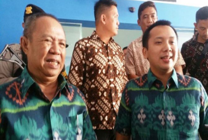 Pasangan petahana bakal calon gubernur-wagub Lampung Ridho- Bachtiar keluar secara berbarengan dengan tersenyum kepada awak media dan sejumlah masyarakat di RSUDAM yang menyambut keduanya.