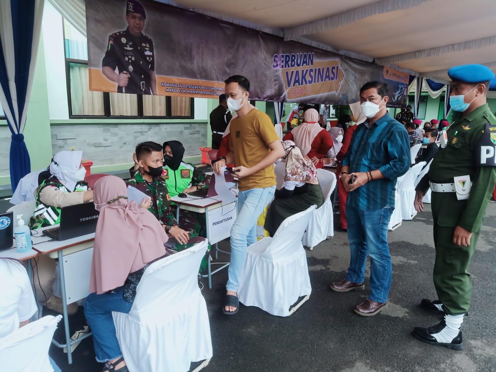 Denpom II/3 Lampung Menggelar Program Serbuan Vaksinasi Pertama bagi Masyarakat Bandarlampung