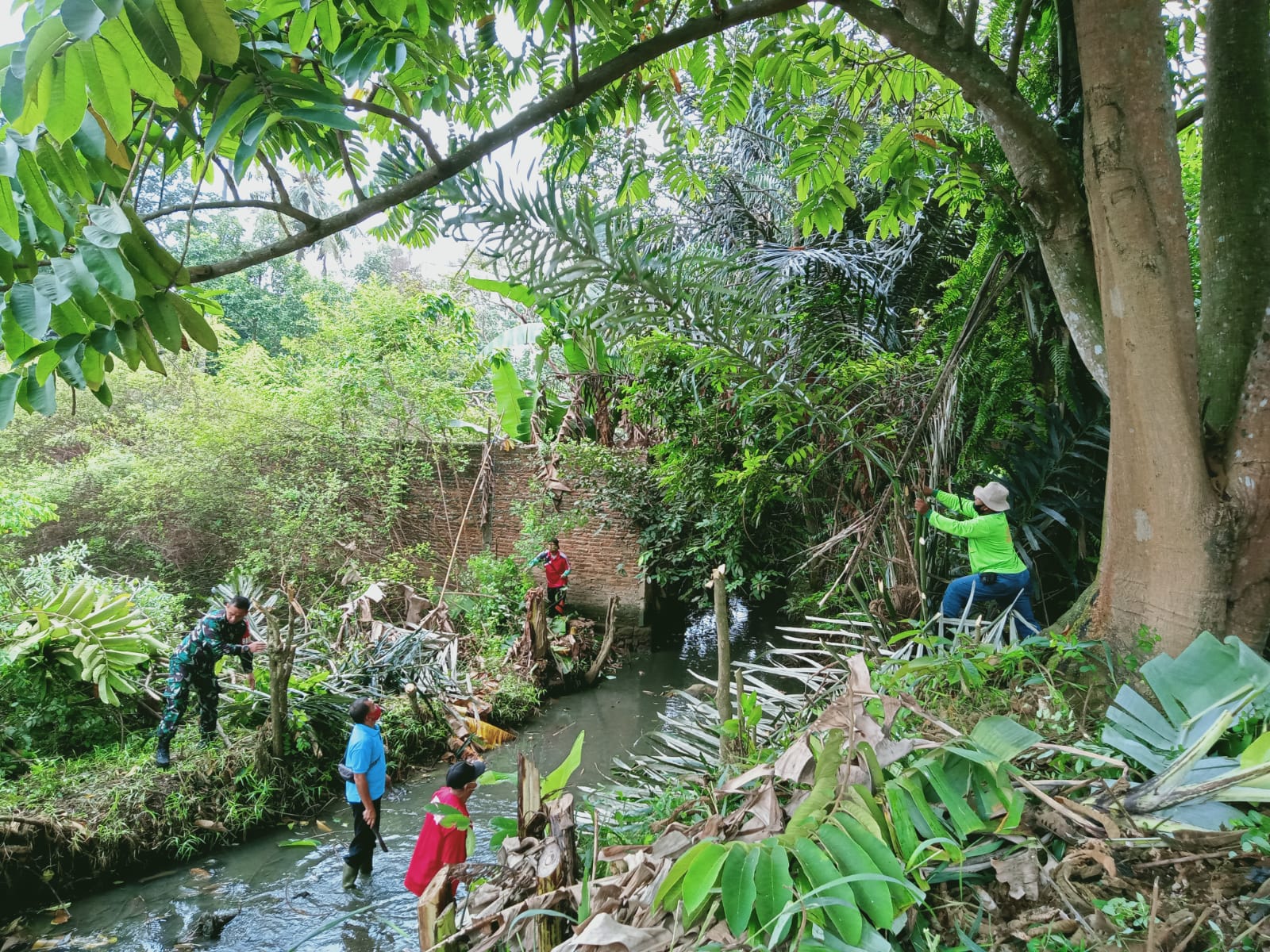 Sertu Hadori bersama Tiga Pilar dan Komponen Masyarakat Labuhan Ratu Raya Bersihkan Sungai