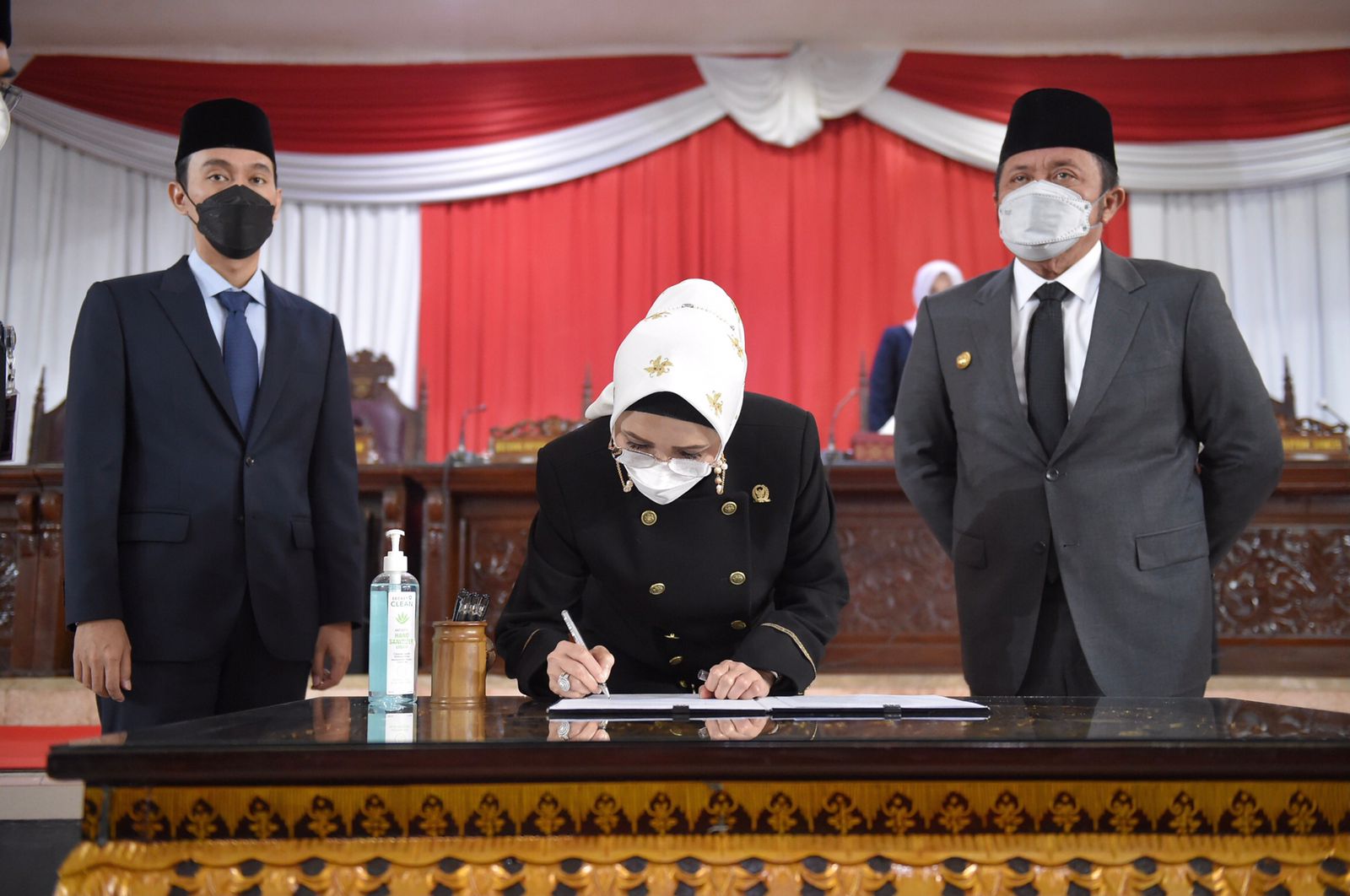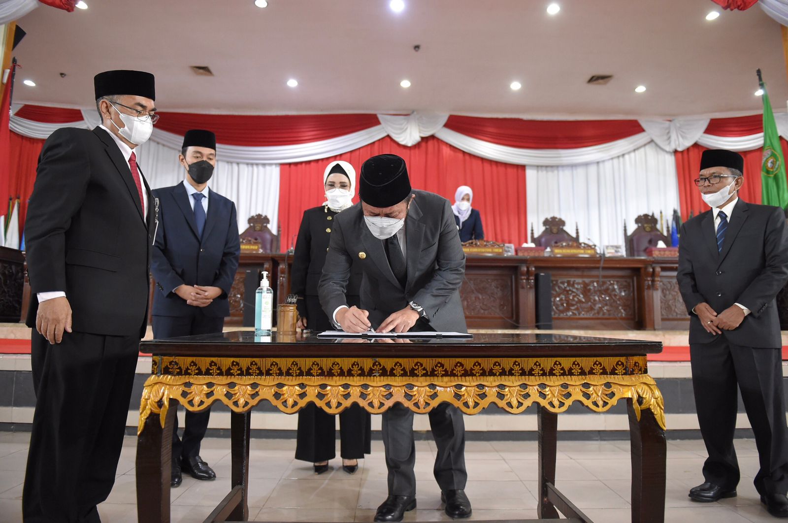 semua anggota DPRD yang hadir, dengan prosesi penandatanganan Keputusan Bersama