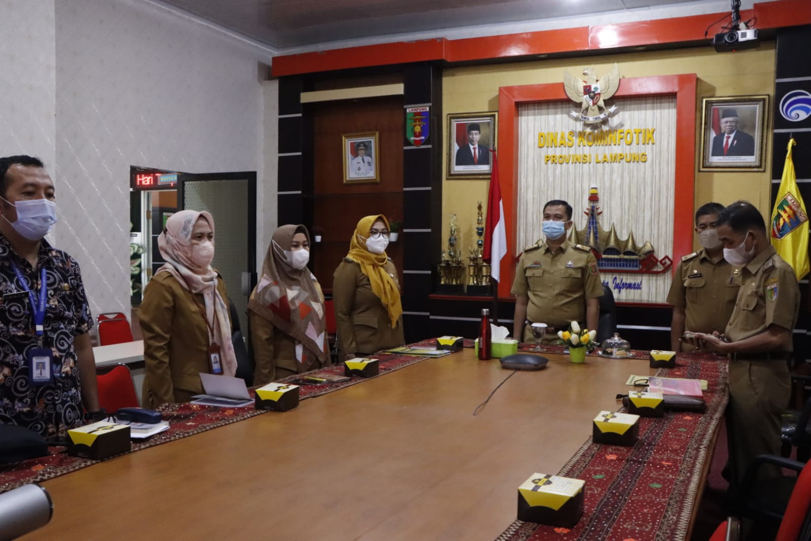 Video Conference Diskominfotik Provinsi Lampung, Selasa (14/12/2021).