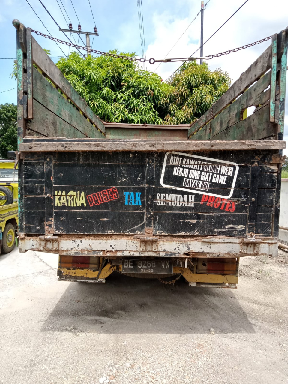 besi tangki timbun tersebut di angkat dan dinaikan ke mobil.