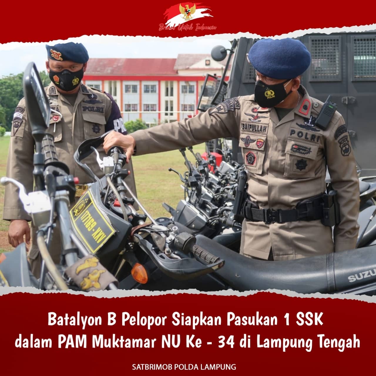 Batalyon B Pelopor Siapkan Pasukan 1 SSK dalam PAM Muktamar NU Ke - 34 di Lampung Tengah