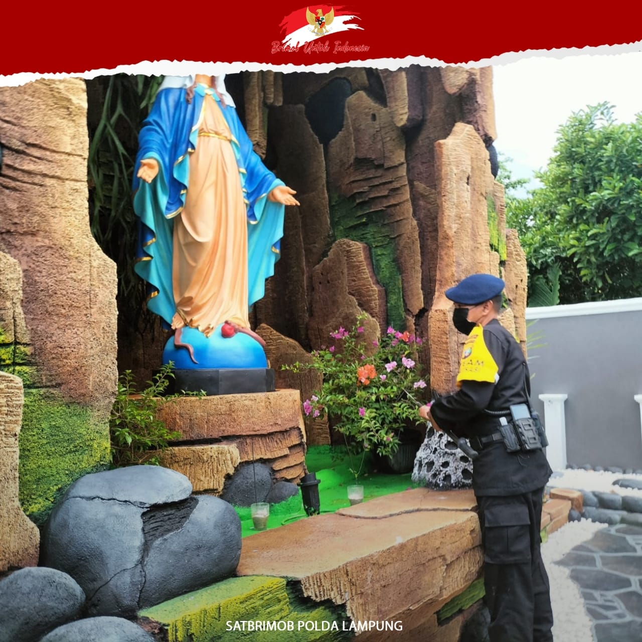 Lilin Krakatau 2021 Polda Lampung mengamankan dan Mensterilkan Lokasi Gereja
