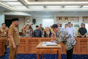 OTENTIK ( BANDAR LAMPUNG ) — Gubernur Lampung Rahmat Mirzani Djausal menerima penyerahan Berita Acara Kesepakatan Bersama a ...