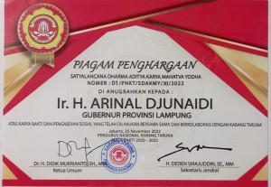 OTENTIK (SURAKARTA) – Gubernur Lampung Arinal Djunaidi menerima Satyalancana Dharma Aditya Karya Mahatva Yodha (AKMY) Awa ...